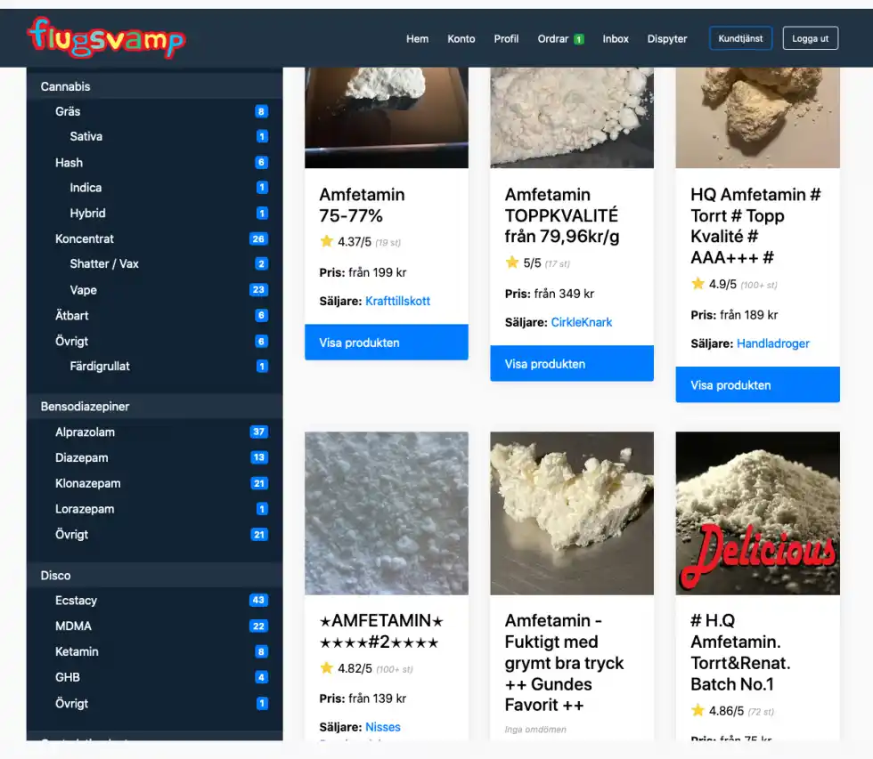 Alexander Gustafsson, who ran the dark web market site Flugsvamp 2.0, was identified in 2018 and charged in the district court. The prosecutor asked for 14 years but the 30-year-old man was acquitted of the charges.